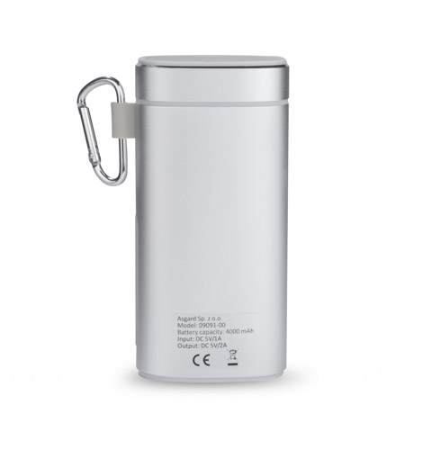 Elegancki głośnik bezprzewodowy z power bankiem o pojemności 4000 mAh to świetny podarunek dla gadżeciarzy. Wykonany jest z metalu, co sprawia, że jest trwały, a wygrawerowane logo będzie się świetnie prezentować. Możliwość wykorzystania głośnika jako zestawu głośnomówiącego. Odtwarzanie muzyki jest możliwe za pośrednictwem bluetooth (wersja 4.2), kabla audio jack 3,5 mm (niedołączony) lub karty micro SD. Ponadto, posiada klasę wodoszczelności IPX4, czyli całkowitą ochronę przed spryskiwaniem i zachlapaniem wodą z różnych kierunków z natężeniem do 10 litrów na minutę. Świetnie nadaje się do użytku turystycznego i na co dzień np. przy lekkim deszczu. Produkt jest zgodny z odpowiednimi dyrektywami Unii Europejskiej, posiada znak CE oraz 1 rok gwarancji. W zestawie kabel do ładowania z końcówką microUSB i karabińczyk. Dane techniczne: - wejście: 5V/1A, - wyjście: 5V/2A, - bateria litowo-polimerowa, moc wyjściowa: 5W x 1, efekt 3D stereo i podbicie basów, Napięcie: 5V Stosunek S/N: ≥ 80 dB, czas pracy: 10-15 godzin
