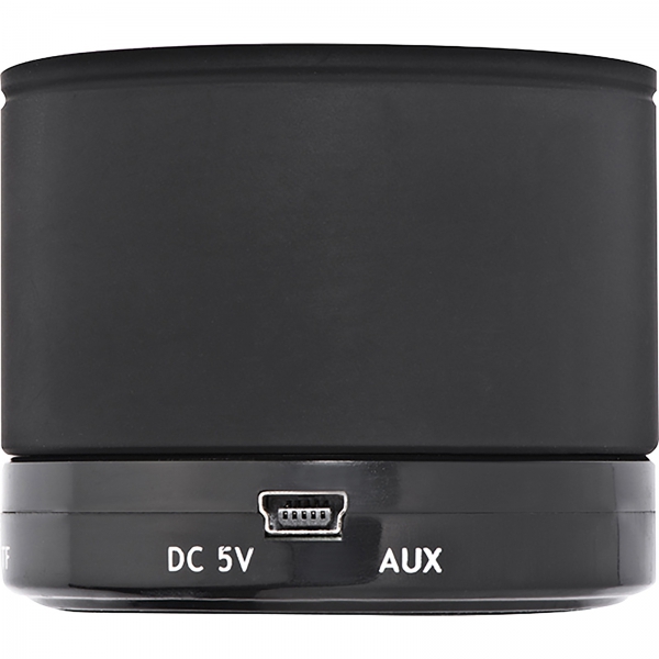 Mini głośnik Bluetooth o gumowanej powierzchni, z radiem i portem USB do ładowania. Można go bezprzewodowo połączyć z tabletem lub smartfonem. Zasięg do 10 m, czas pracy do 5 godzin, moc 3wat.