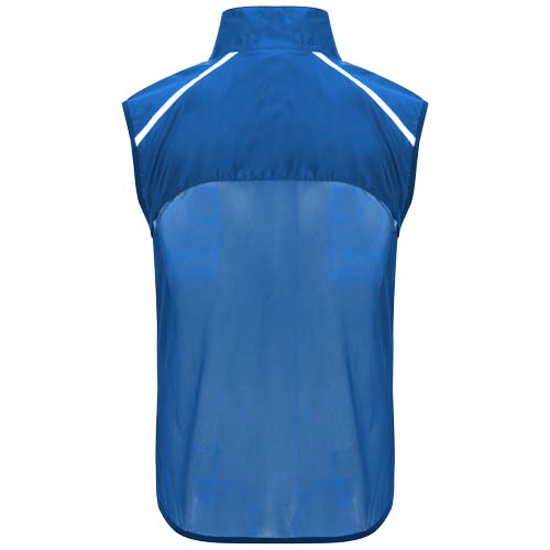 Wiatroszczelny i oddychający. Zamek błyskawiczny z przodu z dopasowaną ochroną podbródka. Elastyczne wiązanie pod pachami i u dołu. Dolna część pleców z mikroperforowanego materiału. Dobrze widoczne detale na górze, z przodu i z tyłu. Kieszeń z elastycznym paskiem do przechowywania kamizelki i noszenia jej na nadgarstku. Usuwalna etykieta.