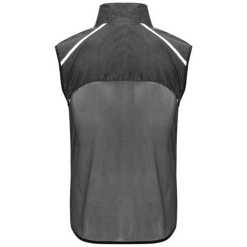 Wiatroszczelny i oddychający. Zamek błyskawiczny z przodu z dopasowaną ochroną podbródka. Elastyczne wiązanie pod pachami i u dołu. Dolna część pleców z mikroperforowanego materiału. Dobrze widoczne detale na górze, z przodu i z tyłu. Kieszeń z elastycznym paskiem do przechowywania kamizelki i noszenia jej na nadgarstku. Usuwalna etykieta.