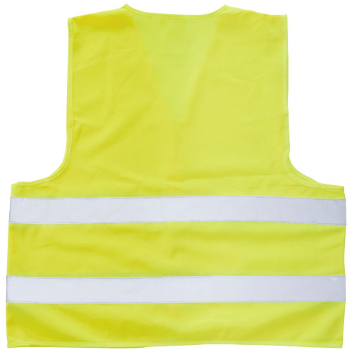 Kamizelka ostrzegawcza klasy 2 o dużej widoczności, odpowiednia dla osób o wzroście od 165 do 180 cm. Dostarczana w pokrowcu o tym samym kolorze o wymiarach 21 x 17 cm. Duża powierzchnia dekoracyjna z przodu/tyłu kamizelki, jak również na pokrowcu. Odzież odblaskowa do użytku profesjonalnego. Tło fluorescencyjne i taśma odblaskowa. Specyfikacja EN ISO 20471:2013+A1:2016. Odzież ta opatrzona jest oznakowaniem CE w celu wykazania zgodności z rozporządzeniem UE 2016/425/EU w sprawie środków ochrony indywidualnej kategorii II.