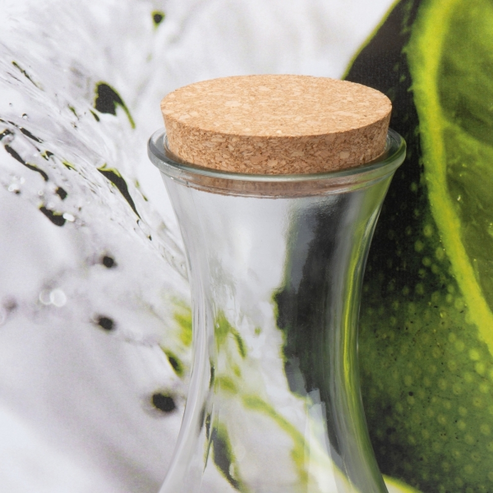 Szklana karafka o pojemności 1000 ml to elegancki i funkcjonalny dodatek do każdego stołu, który łączy w sobie estetykę z praktycznością. Jej smukła forma z szeroką szyjką nie tylko ułatwia nalewanie ulubionych napojów, takich jak orzeźwiająca lemoniada, mrożona herbata czy woda z dodatkiem świeżej mięty, ale także podkreśla ich atrakcyjny wygląd, zachęcając do częstszego sięgania po zdrowe płyny. Karafka wyposażona jest w naturalną korkową zatyczkę, która skutecznie zabezpiecza zawartość, utrzymując świeżość napojów przez dłuższy czas oraz chroni przed insektami, co czyni ją idealnym rozwiązaniem zarówno w domu, jak i na działce czy podczas pikniku.