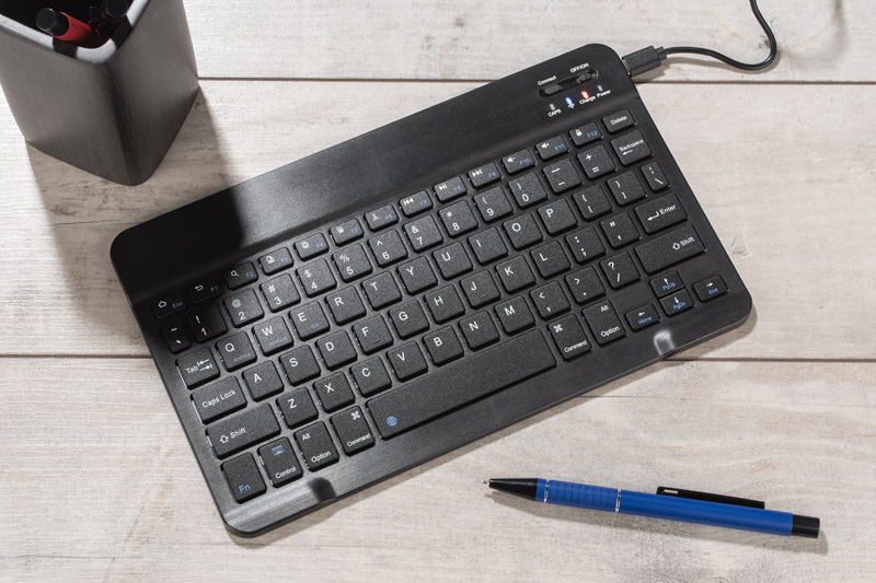 Klawiatura bezprzewodowa KEYGO, to kompaktowa klawiatura o rozmiarach zbliżonych do standardowego tabletu, co sprawia, że jest łatwa do przenoszenia i idealnie nadaje się do pracy w podróży. Niezwykle praktyczną cechą tej klawiatury jest jej długi czas działania na jednym naładowaniu, można korzystać z niej do 36 godzin. Klawiatura współpracuje z systemami iOS, Android, Windows. Połączenie za pomocą Bluetooth 3.0 umożliwi połączenie się z takimi urządzeniami, jak smartfon, tablet i laptop.
