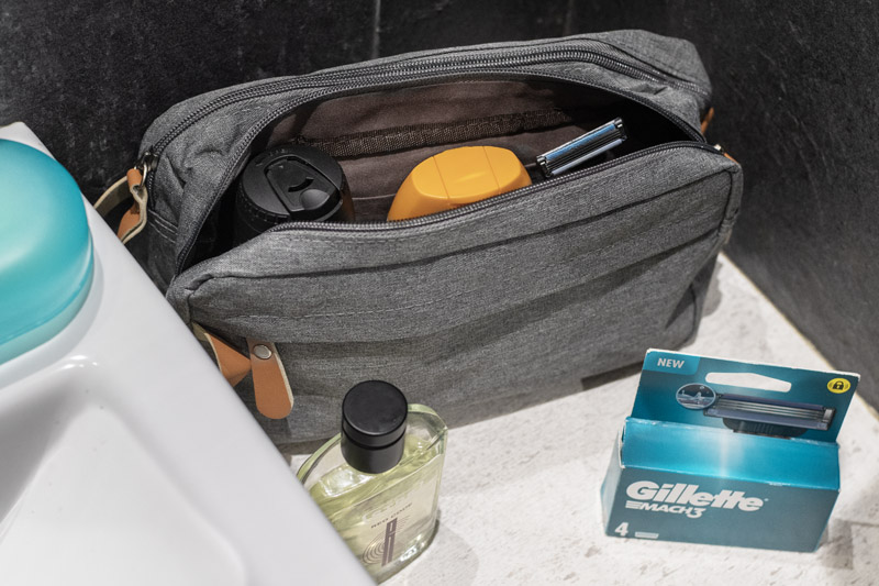 Wakacje? Służbowy wyjazd? Weekendowy wypad? Kosmetyczka NASLI to gadżet, który powinien znaleźć się w Twojej torbie niezależnie od okazji. Niezwykle pojemna, z dwoma oddzielnymi komorami zapinanymi na suwak i licznymi mniejszymi przegródkami, pozwoli Ci uporządkować wszystkie kosmetyki i akcesoria, nawet te najdrobniejsze. Co wyróżnia NASLI? Jej stylowy, popielaty kolor, który idealnie wpisuje się w uniwersalny, unisexowy design – pasuje zarówno do męskich, jak i damskich zestawów podróżnych. Dodatkowo melanżowy odcień sprawia, że kosmetyczka jest bardziej odporna na zabrudzenia, co czyni ją idealnym wyborem na każdą podróż. Zakończenia suwaków i uchwyt z brązowej, ekologicznej skóry nadają jej elegancki wygląd i dodają wyjątkowego charakteru.
