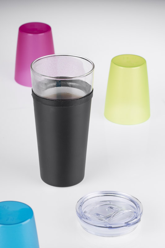 Kubek wykonany ze szkła borokrzemowego, co czyni go bardziej odpornym na ewentualne uderzenia oraz zmianę temperatury. Posiada zewnętrzną warstwę wykonaną ze stali, która stanowi ochronę przed stłuczeniem i zapewnia wygodny uchwyt. Przestrzeń pomiędzy warstwami stanowi warstwę izolacyjną i pomaga utrzymać temperaturę do 4 godzin. Pojemność 428 ml. Otwierany poprzez przesunięcie klapki w przykrywce.