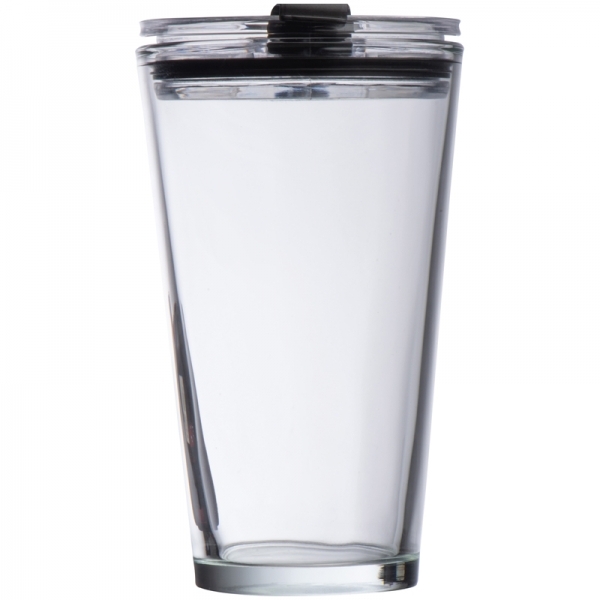 Szklany kubek z pokrywką, o pojemność 400 ml.