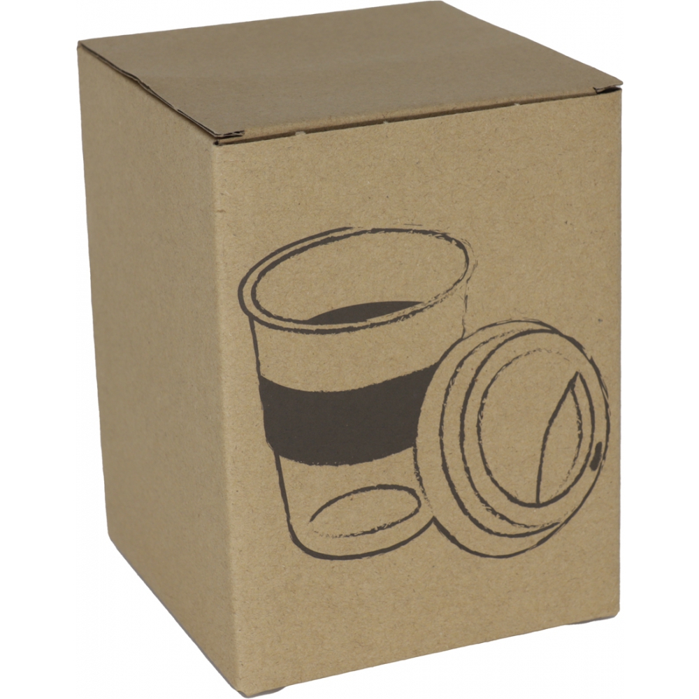 Kubek o pojemności 300ml, wykonany ze szkła, z silikonową pokrywką i silikonowym pierścieniem-nakładką, dzięki której nie ma ryzyka poparzenia dłoni.