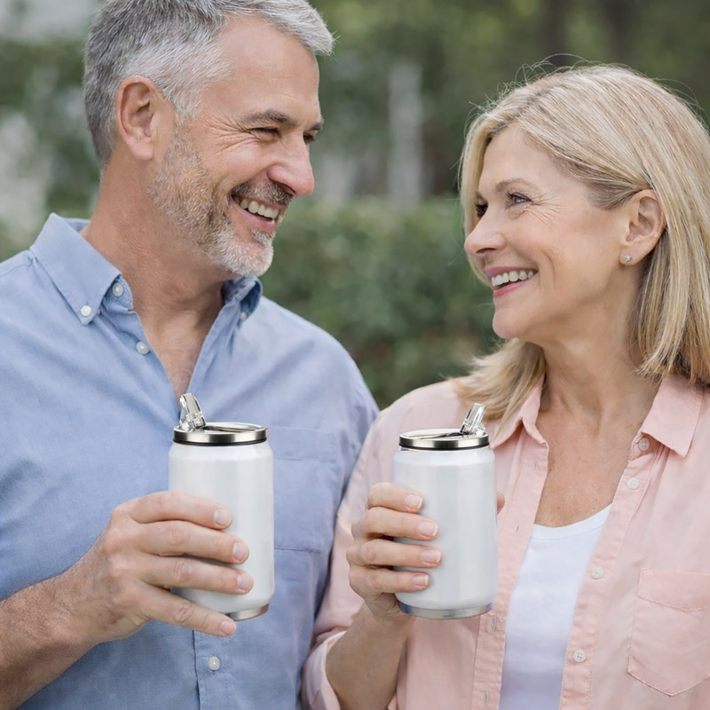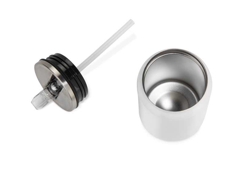 Kubek termiczny KANILO o pojemności 250 ml ma kształt puszki i został wyposażony w ukrytą słomkę, dzięki czemu wyróżnia się spośród klasycznych modeli termicznych. Podwójna ścianka z izolacją próżniową utrzymuje temperaturę napojów do 4 godzin, zarówno ciepłych, jak i zimnych. Pokrywka typu flip-top z klapką otwieraną do góry oraz mechanizm „podnieś” zapewniają wygodne korzystanie. Kubek jest wielorazowy, szczelny i praktyczny w codziennym użytkowaniu – idealny do biura, samochodu lub w podróży.