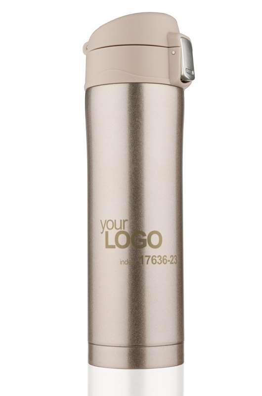 Kubek LOCK to najlepsze cechy kubka termicznego i termosu w jednym produkcie. Wygodny rozmiar i ustnik, z którego można łatwo pić, połączone są z całkowicie szczelnym zamknięciem nieprzepuszczającym cieczy oraz doskonałą termoizolacją. Dzięki próżni między ściankami kubek trzyma temperaturę ok. 13 godzin. W produkcie zastosowano nowatorską blokadę zamka, która zabezpiecza kubek przed przypadkowym otwarciem. Wnętrze wykonane ze stali, pojemność kubka to 440 ml. Znakowanie możliwe na korpusie kubka.