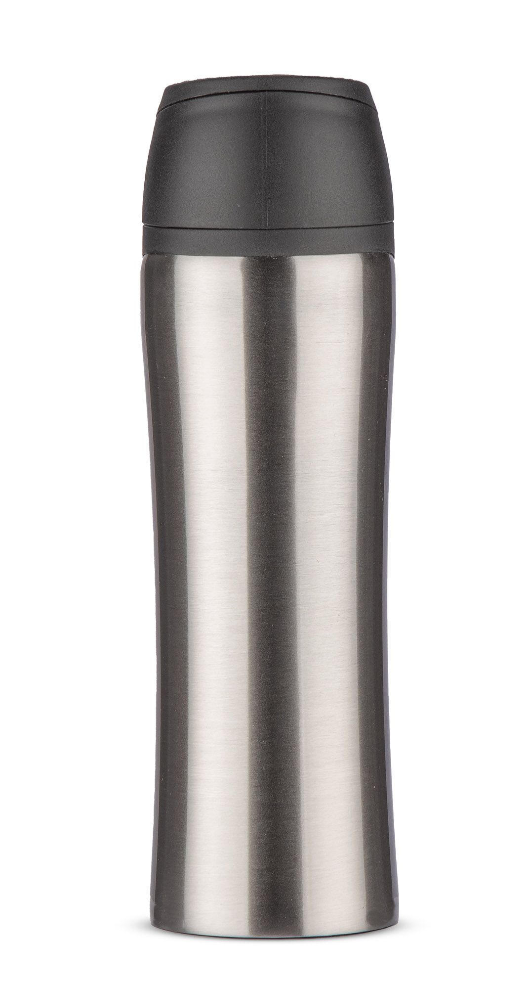 Kubek MIKE to produkt łączący w sobie cechy kubka termicznego i termosu. Cechuje się wysoką termoizolacją, trzymając temperaturę napoju ok. 10 godzin. Wygodny ustnik, otwierany systemem click pozwala swobodnie się napić, a także zapewnia wysoką szczelność. Wykonany ze stali nierdzewnej.