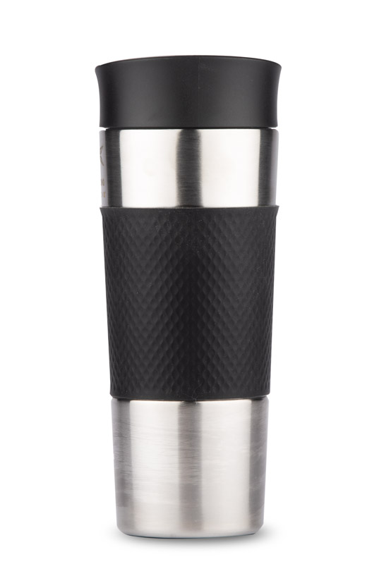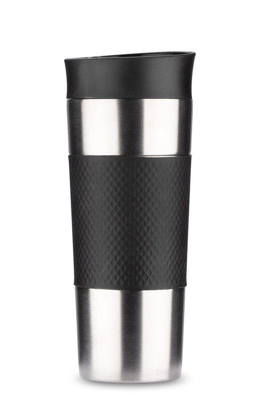 Kubek termiczny RONDE to gadżet praktyczny, wygodny i funkcjonalny. Gumowa opaska na kubku zapewnia pewny i komfortowy chwyt. Posiada zamknięcie z systemem click, który zapewnia szczelność i wygodę picia z każdej strony. Kubek wykonany ze stali nierdzewnej. Gumowa opaska w kolorystyce zamknięcia.