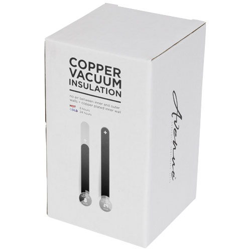 Trwały kubek termiczny o idealnym rozmiarze, świetny w podróży. Wieczko nie przecieka, ma łatwą do otwierania, szczelną klapkę. Kubek ma podwójne ścianki izolowane próżniowo oraz za pomocą miedzi, dzięki czemu izoluje bardzo skutecznie - utrzymuje gorąco napoju przez 8 godzin, a zimno przez 24 godziny. Dzięki takiej konstrukcji para nie osadza się na zewnętrzu kubka. Pojemność 380 ml. Zapakowana w pudełko upominkowe Avenue.
