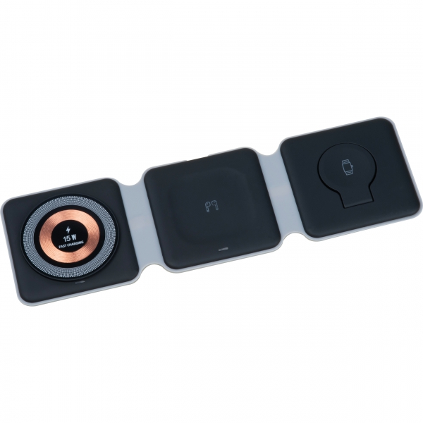 Ładowarka indukcyjna 3w1 to innowacyjne urządzenie, które umożliwia jednoczesne ładowanie telefonu, słuchawek oraz smartwatcha, eliminując konieczność korzystania z licznych kabli. Dzięki zastosowanej technologii bezprzewodowej, ładowarka zapewnia wygodę i porządek na biurku czy nocnej szafce, co przekłada się na komfort codziennego użytkowania. Jej kompaktowy i stylowy design harmonijnie wpasowuje się w każde wnętrze, łącząc estetykę z funkcjonalnością. To doskonałe rozwiązanie dla osób poszukujących efektywnego i nowoczesnego sposobu na zasilanie swoich urządzeń zarówno w domu, jak i w pracy.