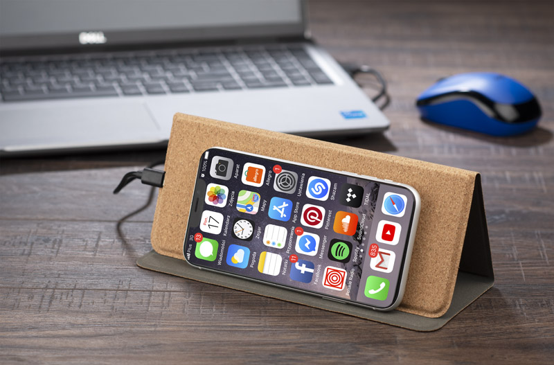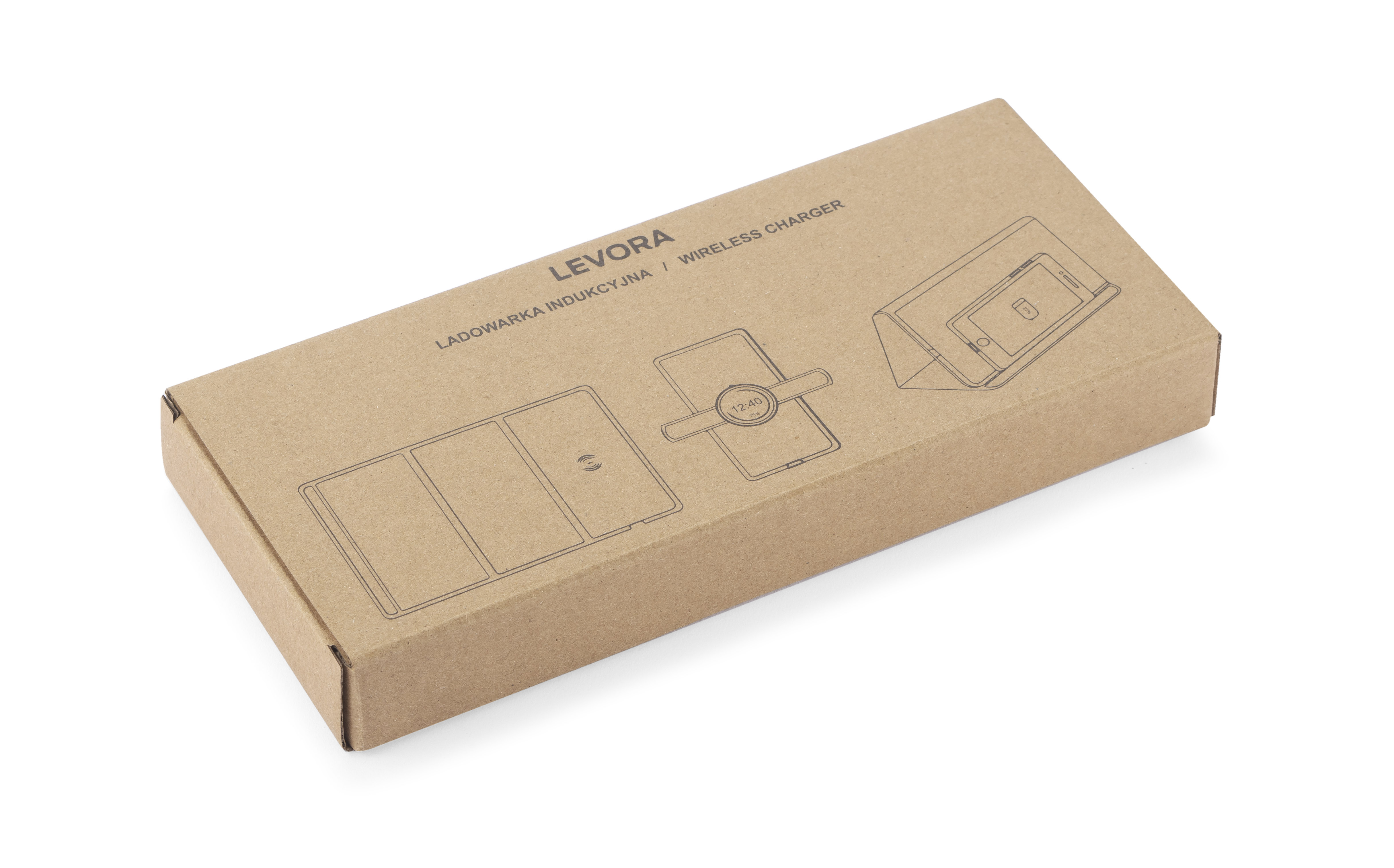 LEVORA to składana ładowarka indukcyjna idealna do ładowania smartfonu jak i zegarka czy słuchawek. Dzięki swojej składanej formie możesz ją wziąć zawsze ze sobą a kiedy potrzebujesz - rozłożyć i wygodnie korzystać z telefonu podczas ładowania. Wykonanie z korka zapewnia wygodę użytkowania bez ryzyka o zarysowanie naszego urządzenia. Dane techniczne: wejście 5V/2A, moc 5W.