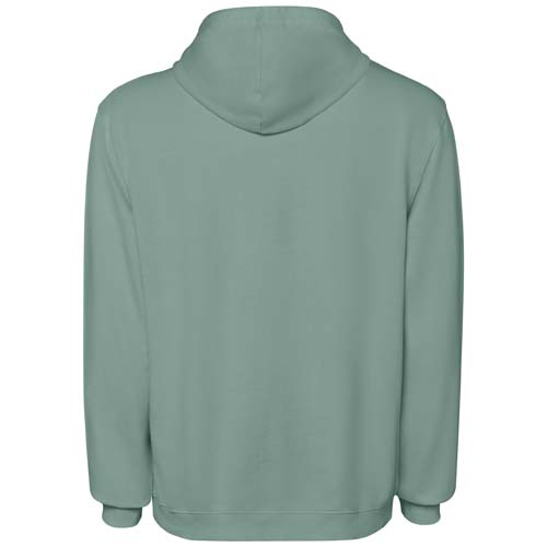 Bluza z kapturem typu unisex z wykończeniem wykończeniem uzyskanym dzięki poddaniu działaniu wybielacza w celu uzyskania smug lub odbarwień. Mankiety i talia wykończone prążkowanym ściągaczem 2x1. Kaptur podszyty dzianiną single dżersej w tym samym kolorze, z dopasowanymi płaskimi sznurkami. Ścieg kryty ton w ton przy dekolcie. Kieszeń kangurka.