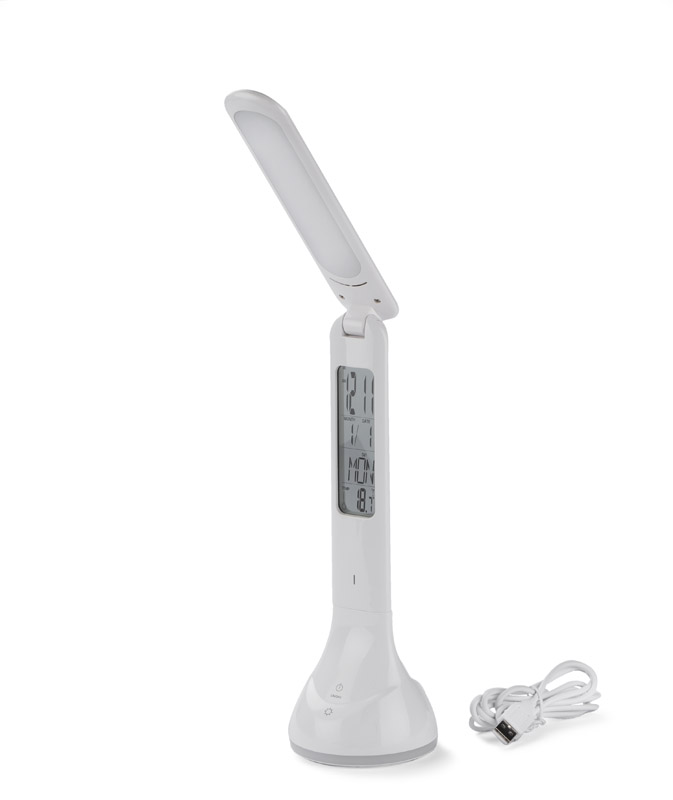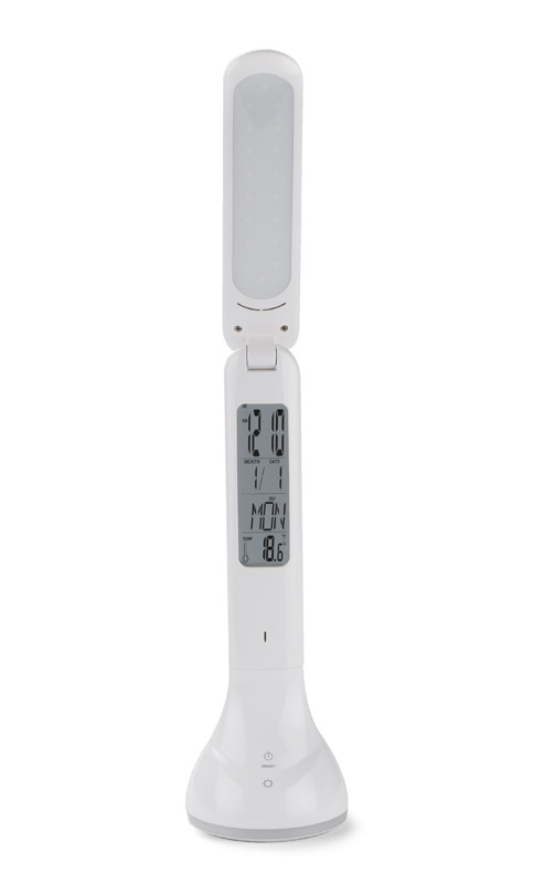 Wyjątkowa lampka na biurko z wbudowaną stacją pogody. Lampka posiada 3 stopnie natężenia światła dzięki czemu biurko zawsze będzie odpowiednio oświetlone. Specjalny filtr przy diadach LED powoduje, że światło jest bardziej naturalne i pomaga w ochronie oczu. Zmienne, wielokolorowe podświetlenie (RGB- red, green, blue) podstawki nadaje jej nowoczesny wygląd i tworzy wyjątkową atmosferę. Lampka ENLI zawdzięcza swoją funkcjonalność wbudowanej baterii o pojemności 1200 mAh, można ustawić ją w dowolnym miejscu bez zbędnego okablowania. Wbudowana stacja pogody posiada następujące funkcje: godzina, data, dzień tygodnia, temperatura, budzik oraz przypomnienie o urodzinach.