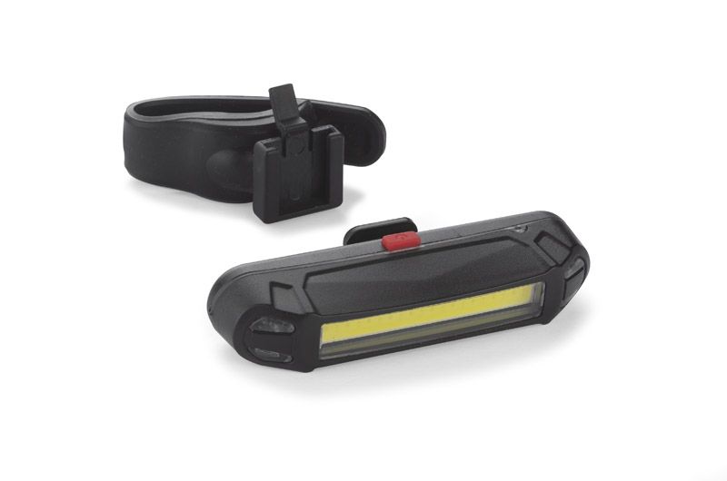 Lampka rowerowa FARO to świetny gadżet dla rowerzystów. Wyposażona jest w diody LED COB i wbudowany akumulator o pojemności 500 mAh. Posiada pięć trybów działania: czerwone i białe światło stałe, dwa tryby światła czerwonego migającego oraz światło czerwone i białe migające naprzemiennie. Dzięki temu może być wykorzystana zarówno jako lampka przednia, jak i tylna. W zestawie dołączony kabel micro USB do ładowania. Posiada wygodny silikonowy uchwyt.