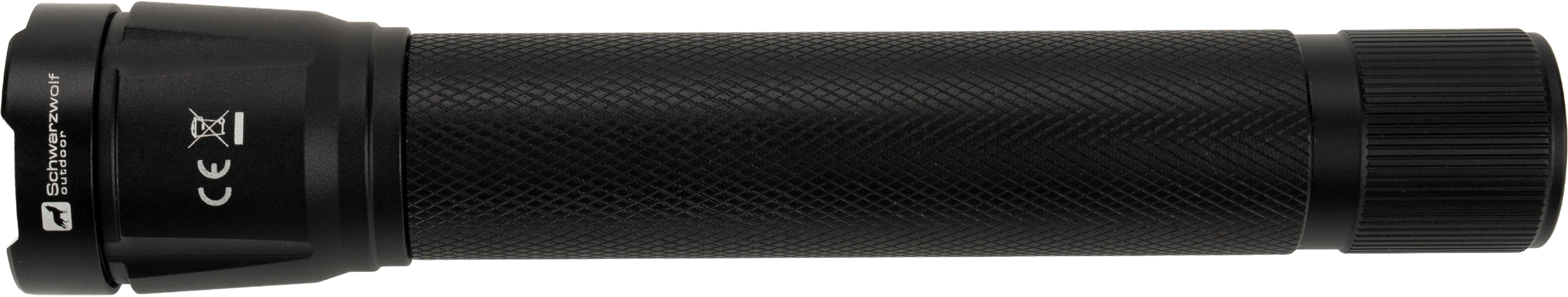 Latarka Outdoorowa Schwarzwolf. Zawiera diodę 3x CREE XPE LED i 3 tryby świecenia: mocne, średnie i migające. W zestawie dołączone są baterie 2 × AA.