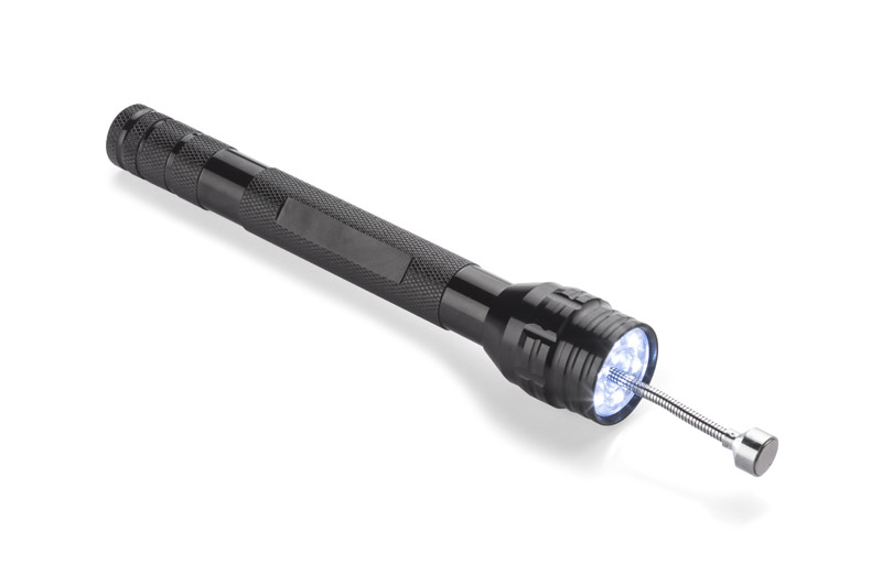 Latarka LED z 6 diodami oraz niezwykle przydatna funkcją magnesu umieszczonego na wysuwanym teleskopowym ramieniu. Końcówka ramienia zgina się zapewniając wygodne dojście w każdą szczelinę. Dzięki tej latarce bez problemu odnajdziemy i wyciągniemy zagubione śrubki, nakrętki czy inne drobne przedmioty. Logo wygrawerujemy na rączce latarki.