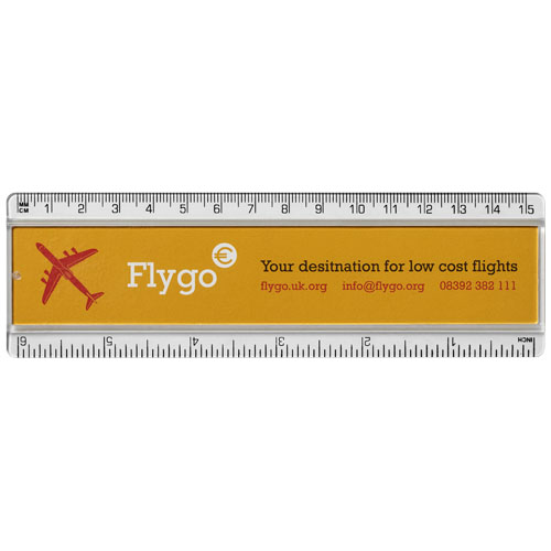 Linijka Ellison o długości 15 cm wykonana z tworzywa sztucznego z papierową wkładką