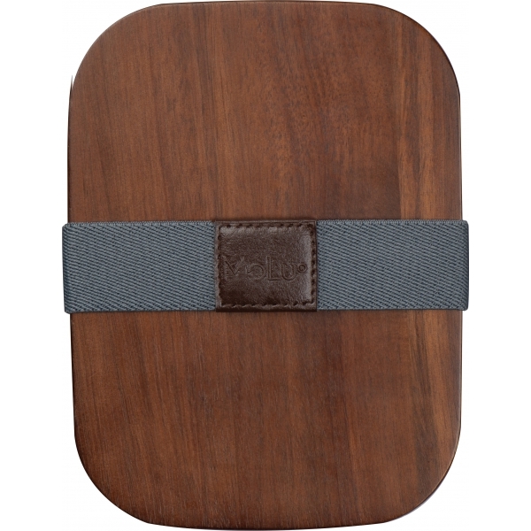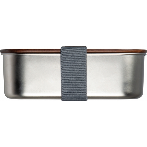 Lunch box wykonany ze stali nierdzewnej z recyklingu, z pokrywką z drewna akacjowego oraz gumką. Pojemność 1000 ml.