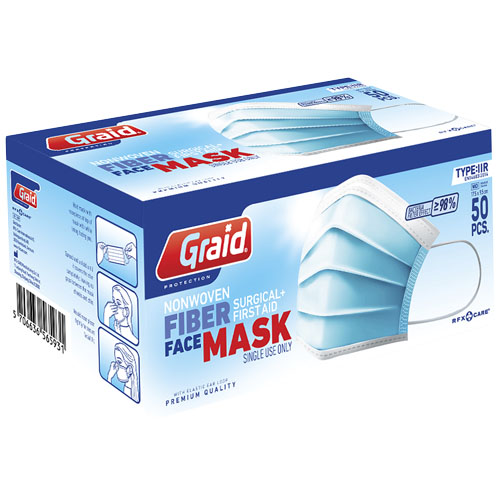 Środki ochrony osobistej. Maska typu IIR trójwarstwowa. Maska na twarz z miękką i mocną gumką na ucho oraz zaciskiem na nos zapewniającym dobre dopasowanie. Maska posiada wysoką skuteczność filtracji drobnoustrojowej. Maska jednorazowego użytku jest zalecana do stosowania przez populację ogólną i personel medyczny w celu zmniejszenia ryzyka zainfekowania krzyżowego. Ochrona i minimalizacja ryzyka infekcji. Zapewnia komfort dzięki oddychającemu materiałowi, który nie podrażnia skóry. Oznaczenie CE zgodnie z Dyrektywą UE dotyczącą wyrobów medycznych 93/42 / EWG, załącznik V.3 i Vii, reguła 1. klasa 1, zatwierdzenie typu IIR zgodnie z normą EN 14683: 2019. Skuteczność filtra bakteryjnego (BFE) ≥ 98% i odporność na zachlapanie. Testowana zgodność biologiczna.