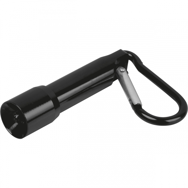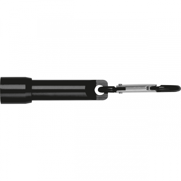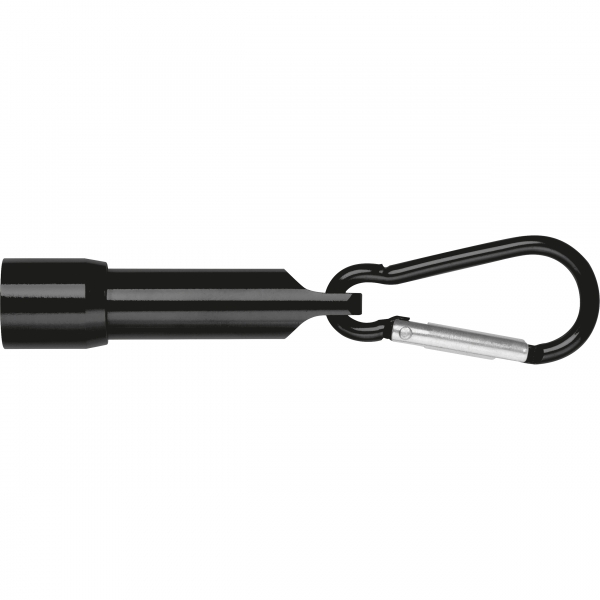 Mini latarka z karabińczykiem wykonana z recyklingowego aluminium. W zestawie 4 baterie guzikowe.