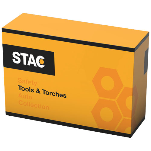 Wysokiej jakości multinarzędzie pokryte gumą z 16 funkcjami: 6 kluczy imbusowych (#2, #2,5, #3, #4, #5, #6), 4 klucze płaskie (8 mm, 10 mm, 15 mm, 14 GE), adapter, śrubokręt krzyżakowy, śrubokręt prosty i trzy klucze nasadowe (#8, #9, #10). Zapakowane w pudełko upominkowe STAC. Wzór zastrzeżony.
