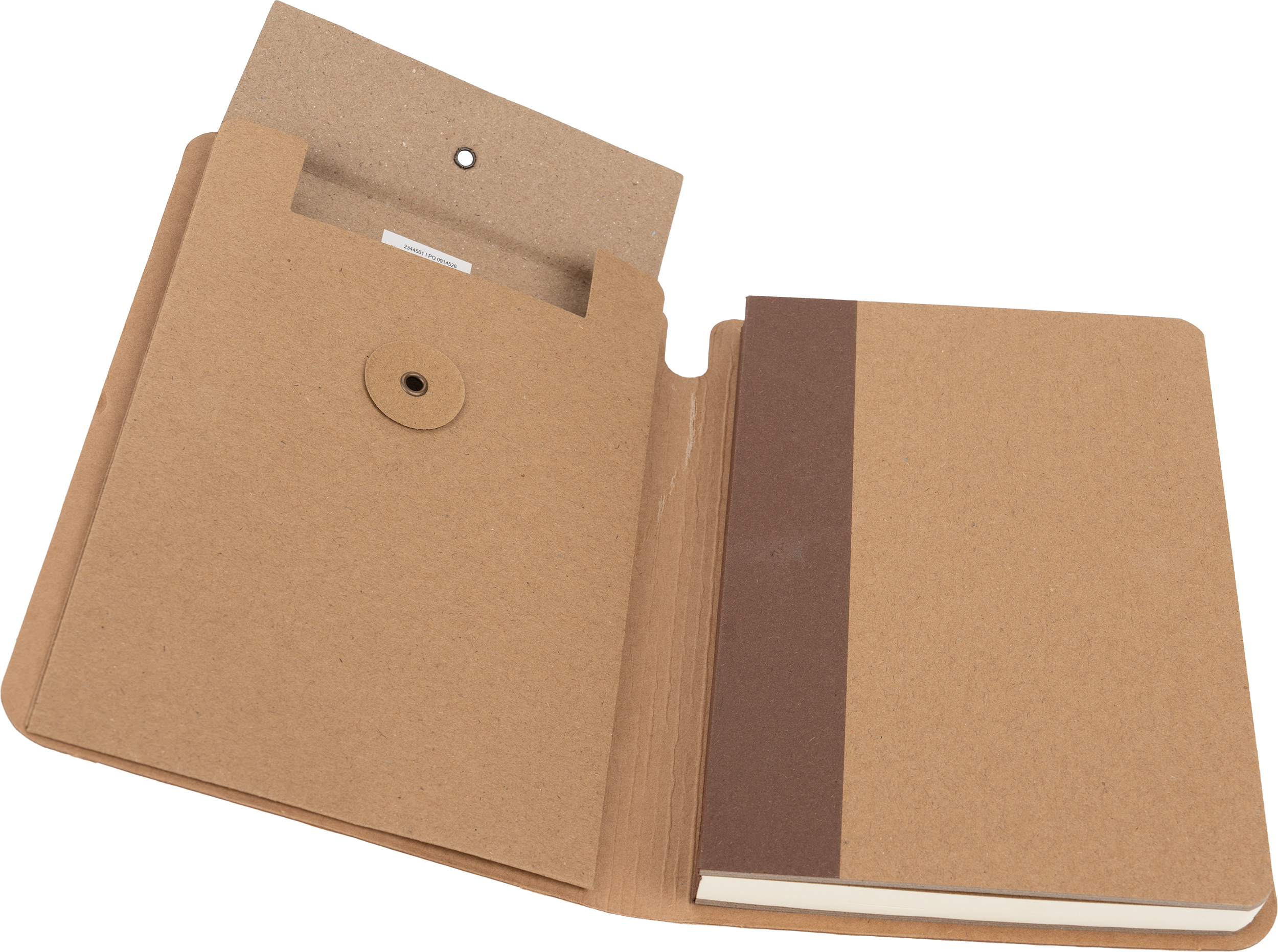 Ekologiczny notes w tekturowej okładce, zamykany na gumkę, posiada 120 stron w linie. Na wewnętrznej stronie okładki znajduje się dodatkowa zamykana kieszonka. Gramatura papieru 70g/m2.
