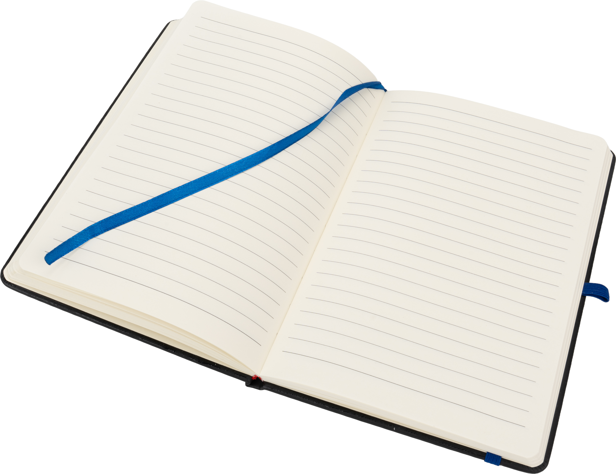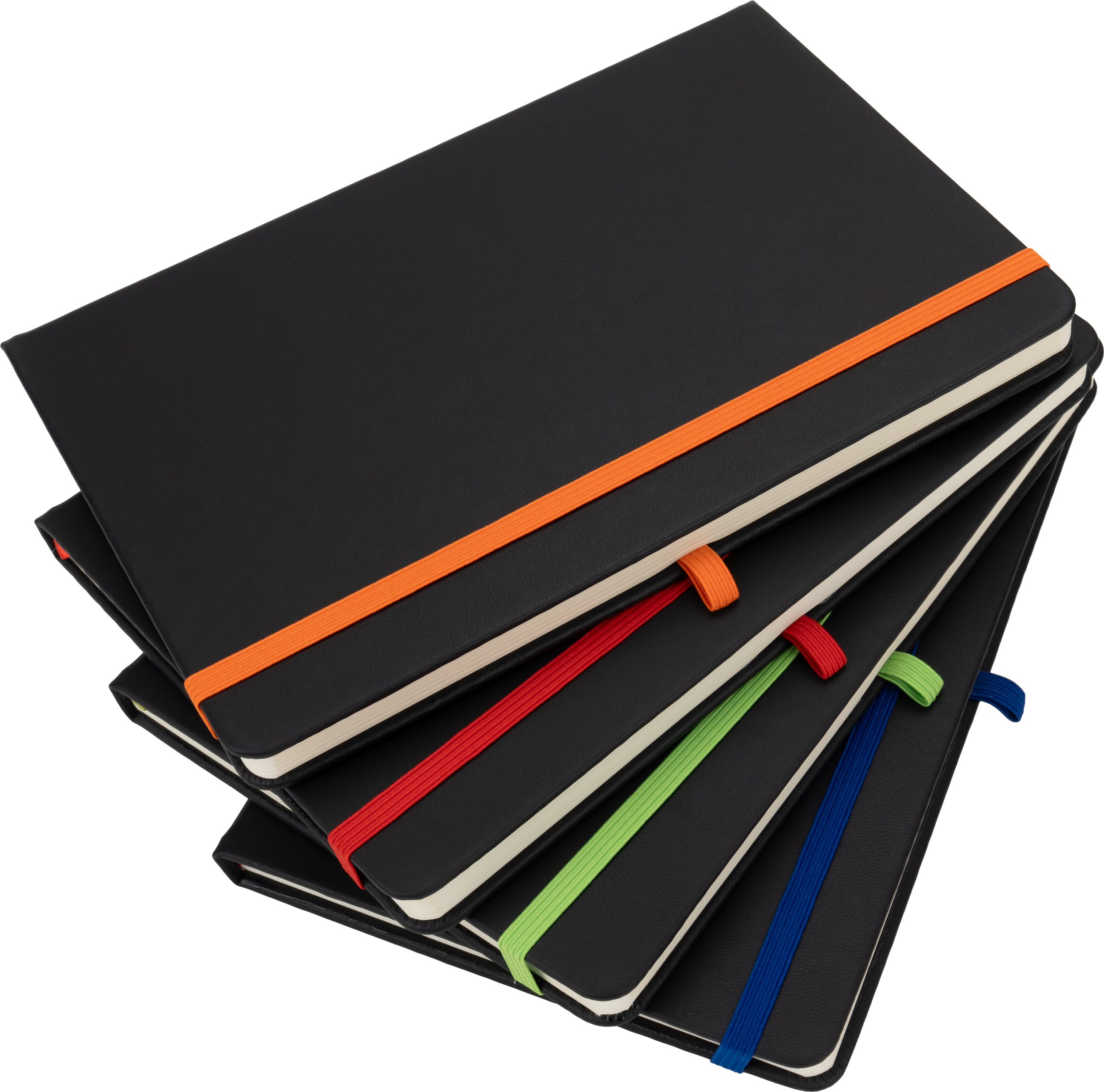 Notes o formacie A5, z okładką wykonaną z PU. Posiada 192 stron w linię, o gramaturze 70 g/m2. Notes ma również zakładkę i gumkę do zamykania. Grawer odsłania kolor okładki.