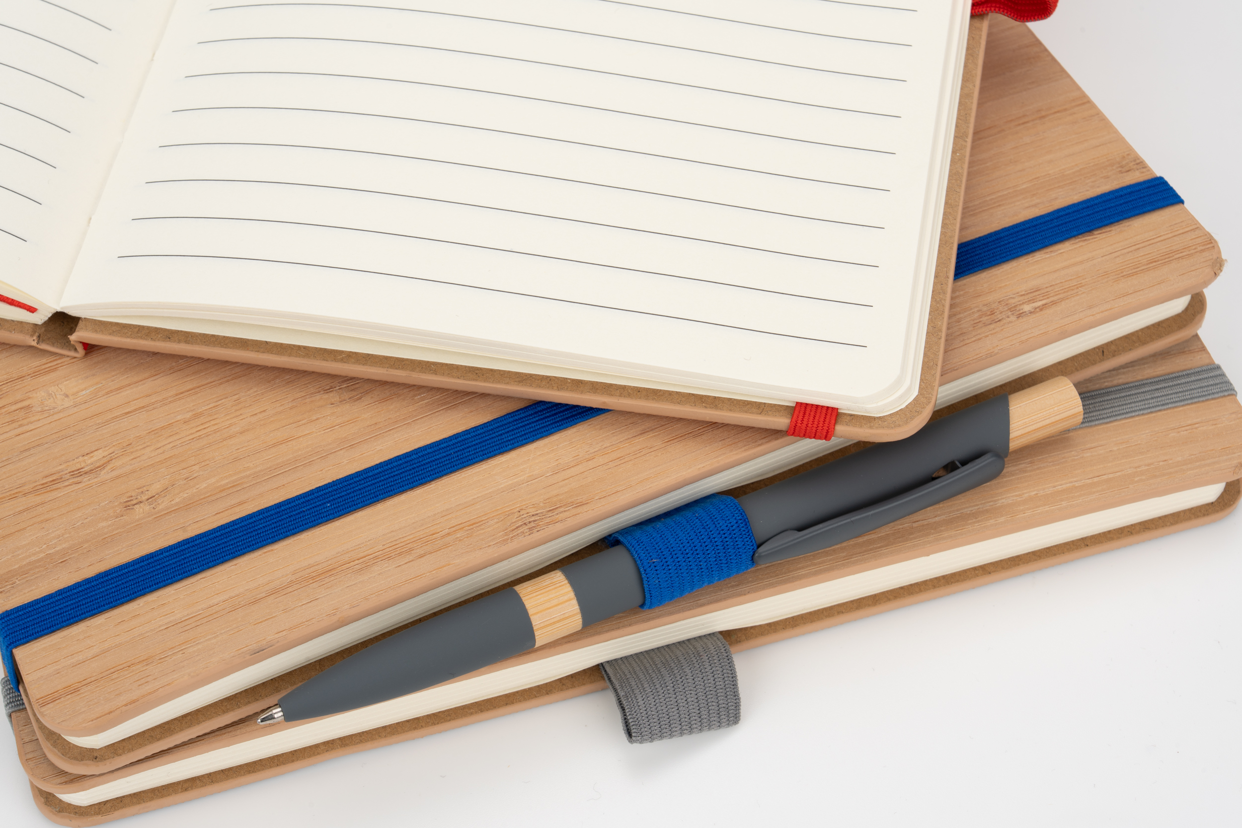 Notatnik A5 w linie to idealne połączenie ekologii, trwałości i funkcjonalności. Wykonany z naturalnego bambusa oraz poliestru z recyklingu, stanowi świadomy wybór dla osób dbających o środowisko. Posiada 192 starannie zaprojektowane strony w linie, które zapewniają wygodne miejsce do zapisywania notatek, planów czy pomysłów. Zamknięcie na gumkę skutecznie chroni zawartość przed przypadkowym otwarciem, a praktyczna pętelka na długopis gwarantuje, że narzędzie do pisania zawsze będzie pod ręką. Kompaktowy format A5 sprawia, że notatnik jest lekki i łatwy do przenoszenia, idealny do pracy, szkoły czy podróży. To stylowy i wytrzymały dodatek, który łączy estetykę z troską o planetę.