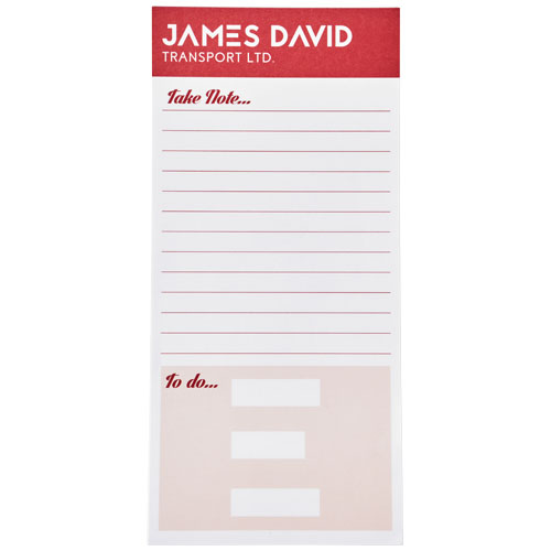 Biały notatnik Desk-Mate® w formacie A1/3 A4. Składa się z czystych kartek o gramaturze 80g/m2. Standardowo 50 kartek, dostępny również w wersjach 25 lub 100 kartek. Możliwość zdobienia każdego arkusza. Wymiar arkusza: 99x210mm.