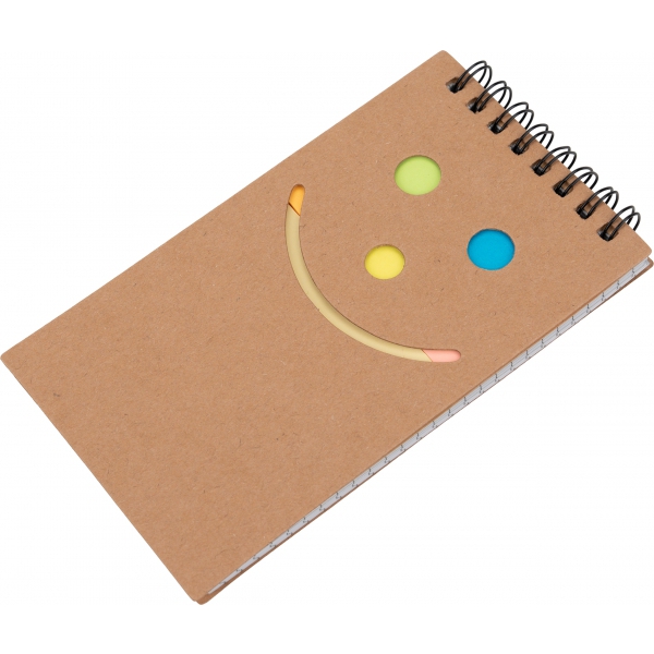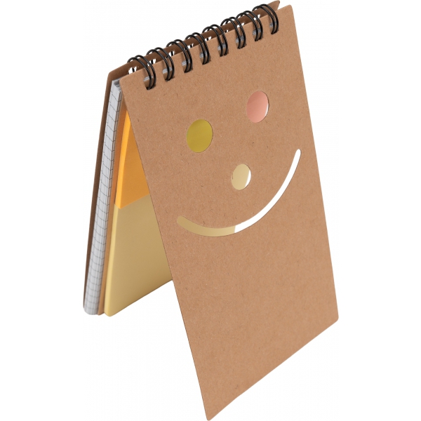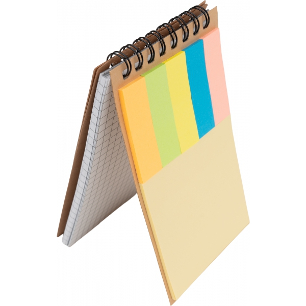 Notes na spirali w kartonowej okładce, z 50 karteczkami w kratkę i 5 małymi bloczkami kolorowych karteczek do zaznaczania.