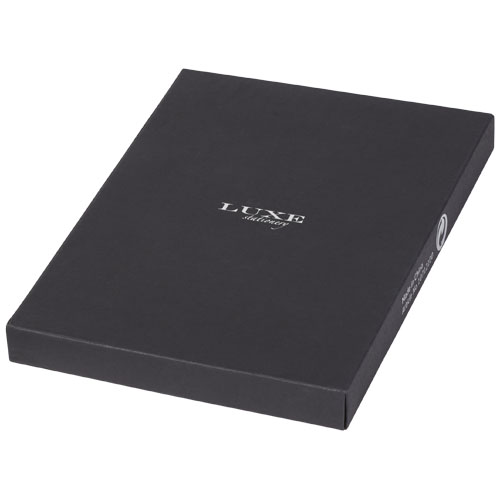 Notatnik (formatu A5), 80 kartek, wyjątkowe wzornictwo 80g/m2, papier kremowy w linie, z tyłu kieszonka na notatki oraz pętla na długopis. Zapakowany w pudełko upominkowe "LUXE".
