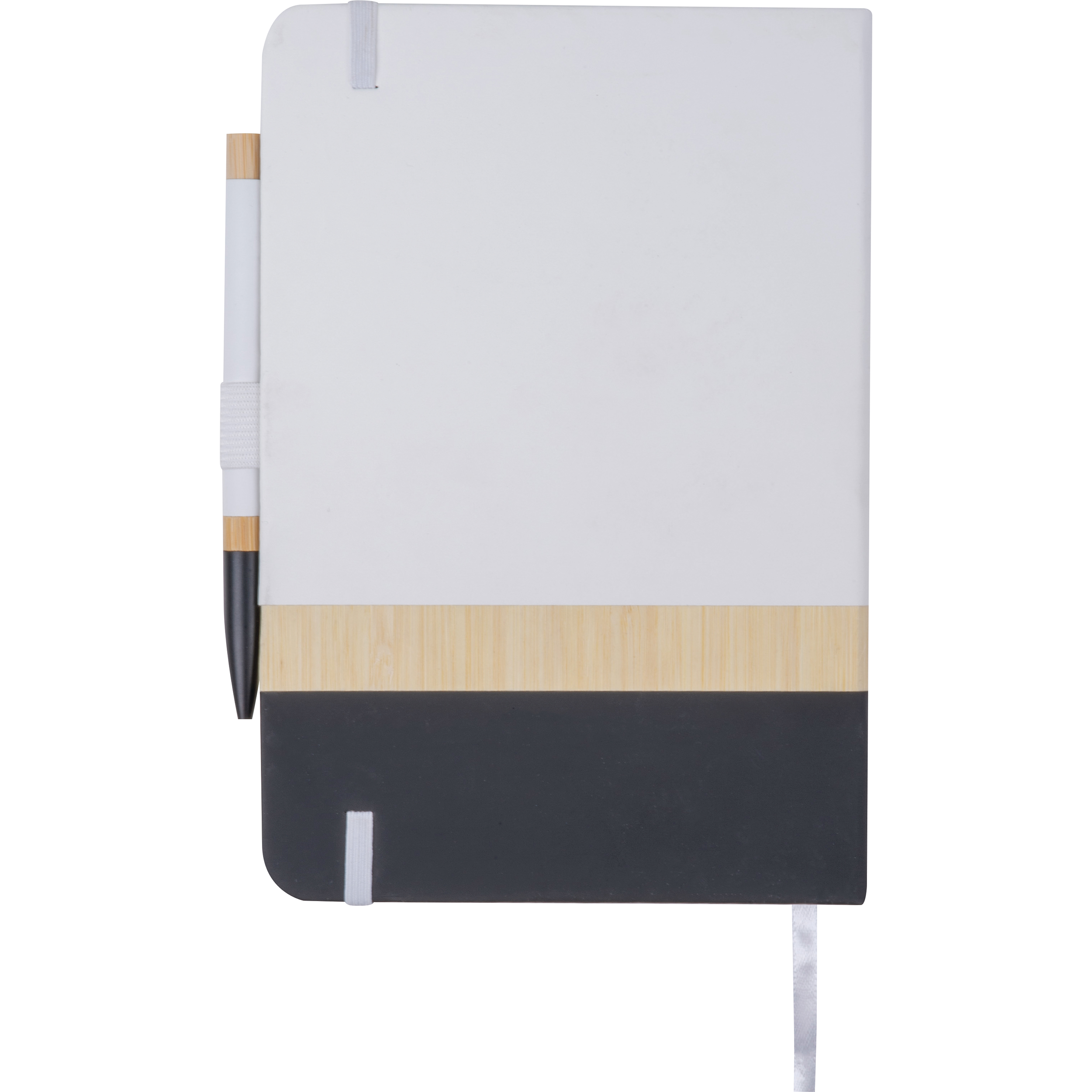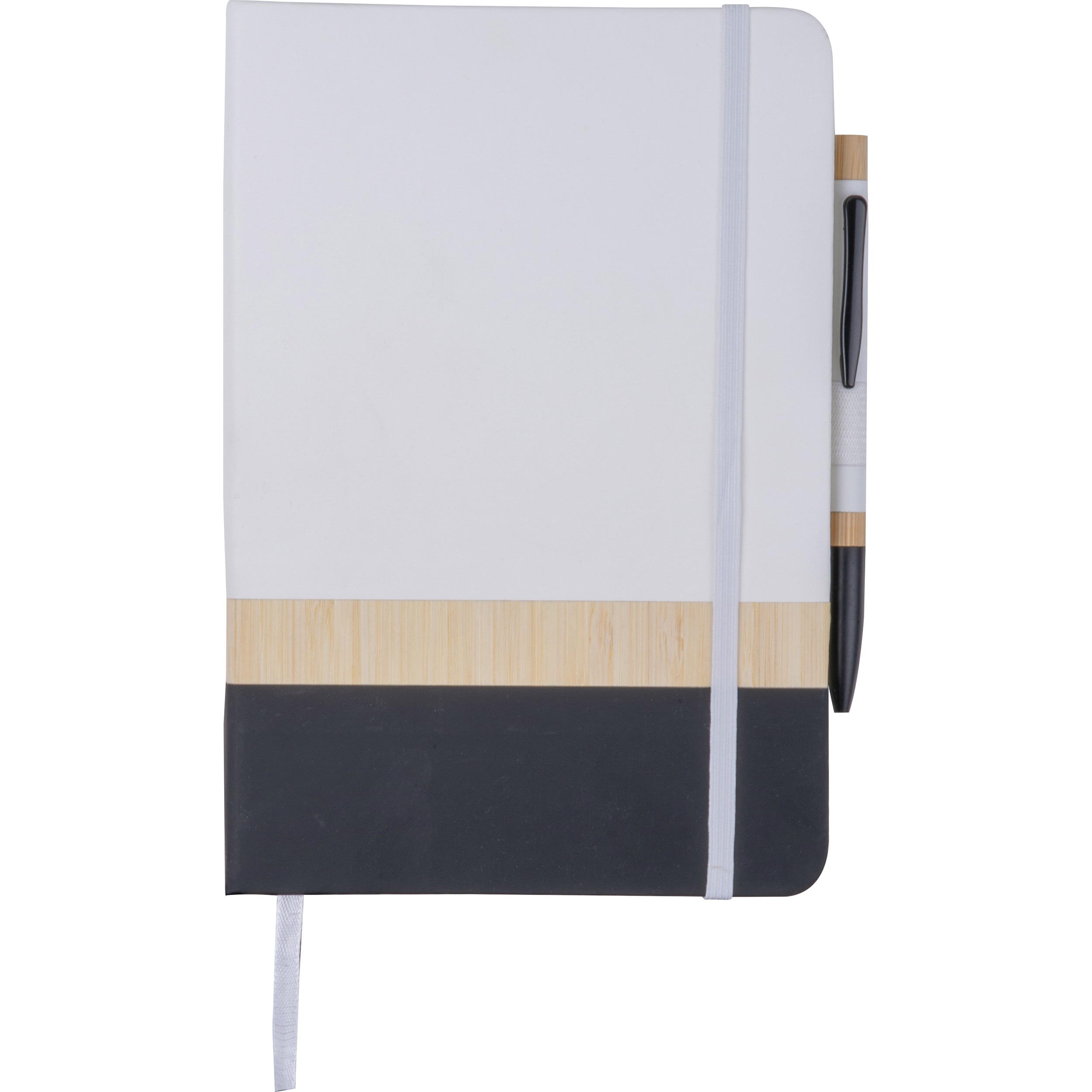 Notes A5 z długopisem to ekologiczny zestaw stworzony z myślą o codziennej wygodzie i stylu. Notatnik zawiera 160 stron w linie wykonanych z papieru z recyklingu, co pozwala na swobodne zapisywanie pomysłów, notatek czy szkiców przy jednoczesnym dbaniu o środowisko. Solidna okładka łączy naturalne właściwości bambusa z trwałością poliuretanu, nadając produktowi nowoczesny i elegancki wygląd. Do kompletu dołączony jest lekki, a zarazem wytrzymały długopis wykonany z aluminium i bambusa, który idealnie komponuje się z notesem, zapewniając komfort pisania w każdej sytuacji.