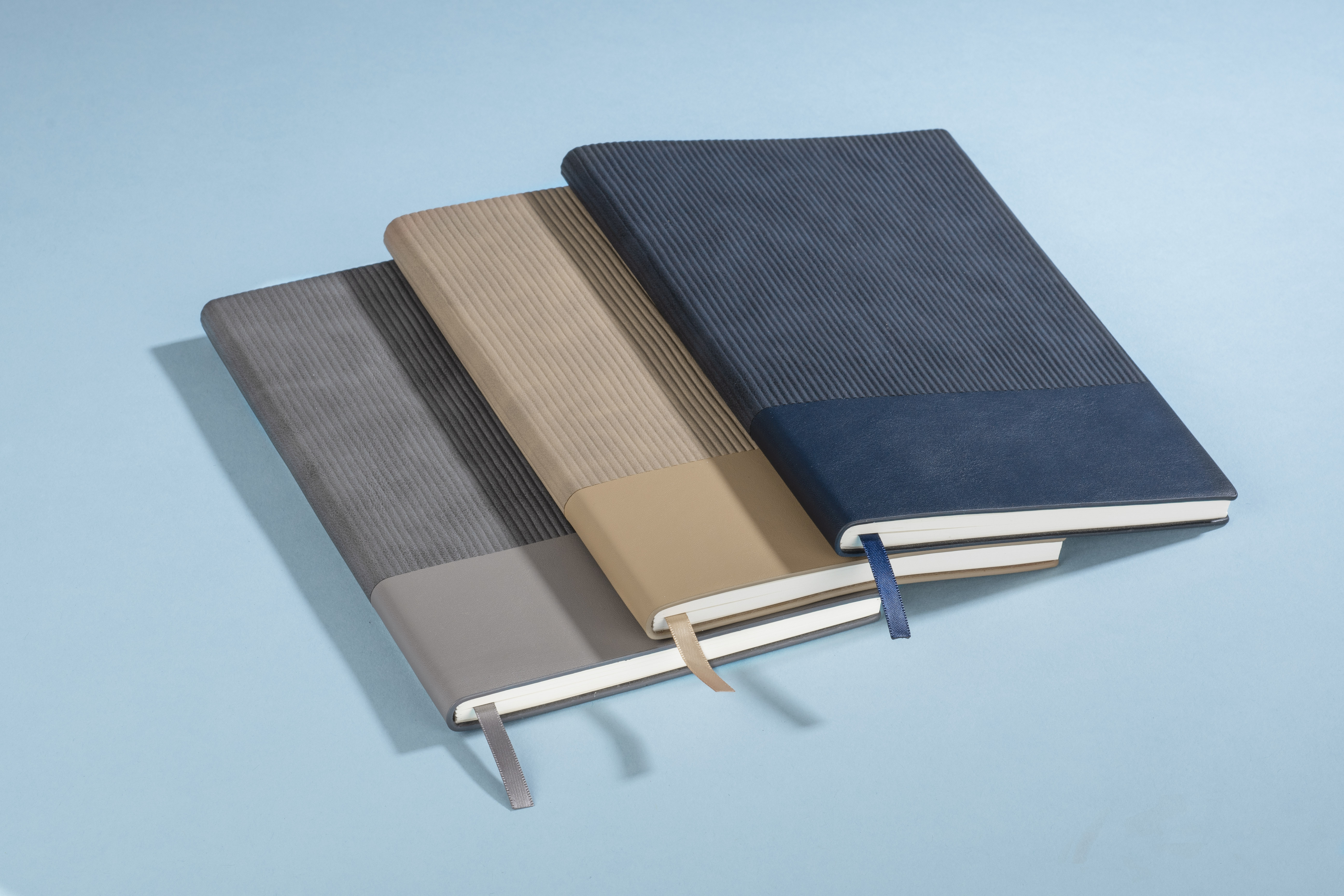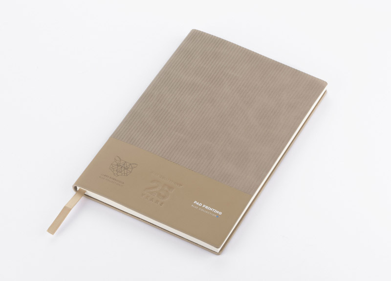 Notes FLAF w formacie A5 ma miękką okładkę łączącą materiał skóropodobny (PU) z imitacją sztruksu, co nadaje mu przyjemną, tekstylną fakturę. W środku znajduje się 80 kartek w kropki oraz praktyczna wstążka pełniąca funkcję zakładki.