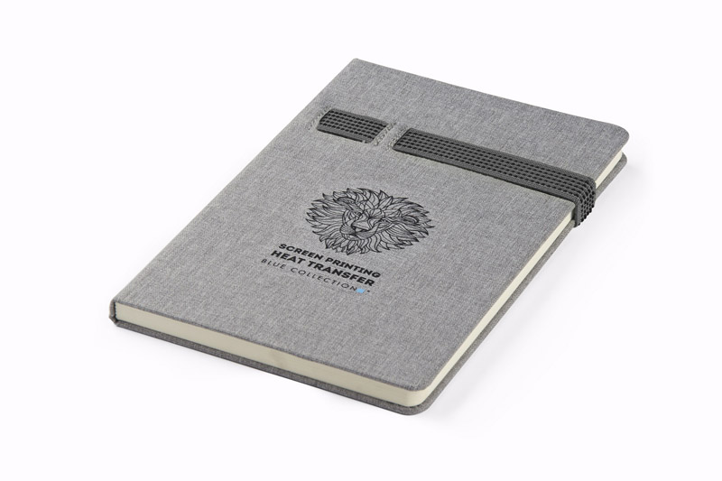 Notes HOLDI posiada bardzo ciekawą okładkę w kolorze szarym, wyglądem przypominającą lniany materiał. Zamykany jest za pomocą kolorowej gumki, która może służyć również jako miejsce na długopisy lub inne niezbędne przedmioty. Notes A5. 80 kartek w linie. Grubość papieru 80 gsm