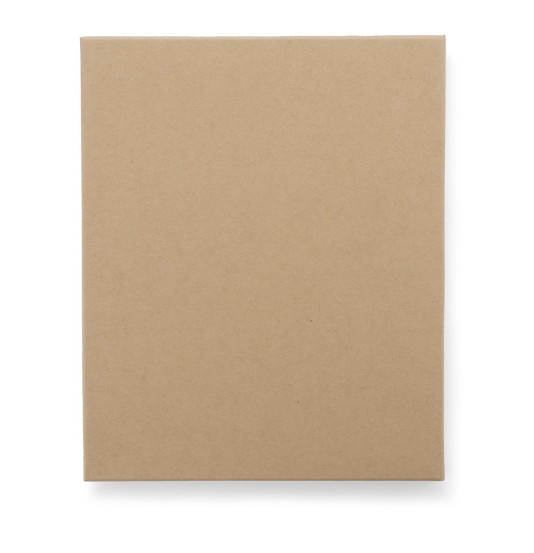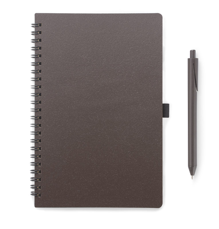 Notes KOPI to idealny pomysł na upominek przyjazny środowisku. Okładka notesu oraz długopis zostały wykonane z tworzywa zmieszanego w 40% z ziarnami kawy, dzięki czemu do produkcji zużyto zdecydowanie mniej plastiku. Notes zawiera 70 kartek w linie wykonanych z papieru z recyklingu w kolorze brązowym. W zestawie długopis automatyczny z wkładem w kolorze niebieskim. Całość zapakowana w ładny kartonik z brązowej tektury idealnie wpisujący się w trend ekologiczny.