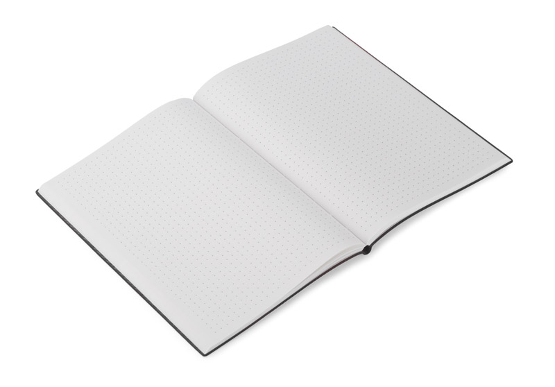 Notes w miękkiej okładce z ozdobnym złoceniem. Kartki w notesie wyprodukowane zostały z papieru kamiennego. Taki papier jest wyjątkowo odporny na rozdarcia oraz na wilgoć. Posiada 80 kartek w kropki. Format A5.