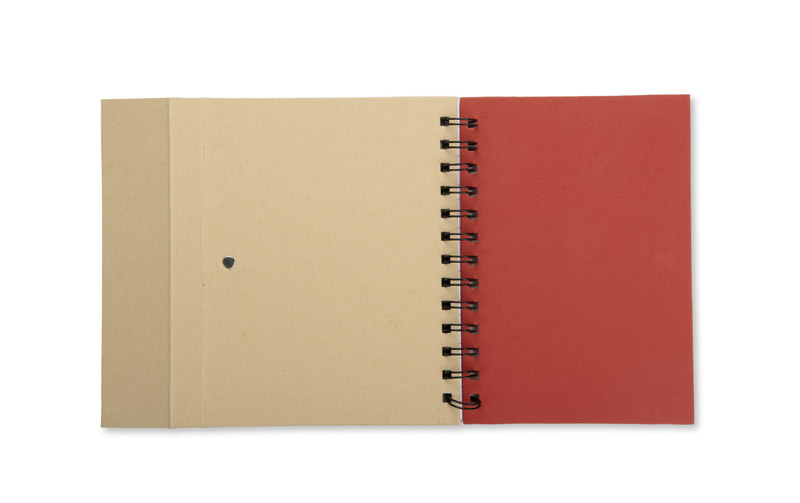 Notes MAGO B6 to funkcjonalny notatnik kołowy zamykany na magnes, idealny do codziennego użytku w biurze lub w terenie. W środku znajduje się 70 białych kartek w linie, zestaw samoprzylepnych karteczek (6 bloczków po 25 sztuk: 2 większe oraz 4 indeksujące w neonowych kolorach) oraz papierowy długopis, umieszczony w praktycznym uchwycie. Poręczny i kompletny zestaw do notowania i organizowania informacji – zawsze pod ręką.