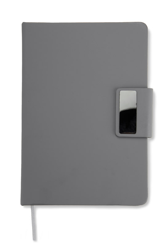 Notes NORO A5 to elegancki gadżet biurowy z matową okładką i charakterystycznym zapięciem na magnes, wykończonym dekoracyjną blaszką. W środku znajduje się 96 kartek w kratkę w kolorze ecru, zszywanych dla wygodnego użytkowania. Stylowy i funkcjonalny – doskonale sprawdzi się jako nośnik identyfikacji wizualnej marki.