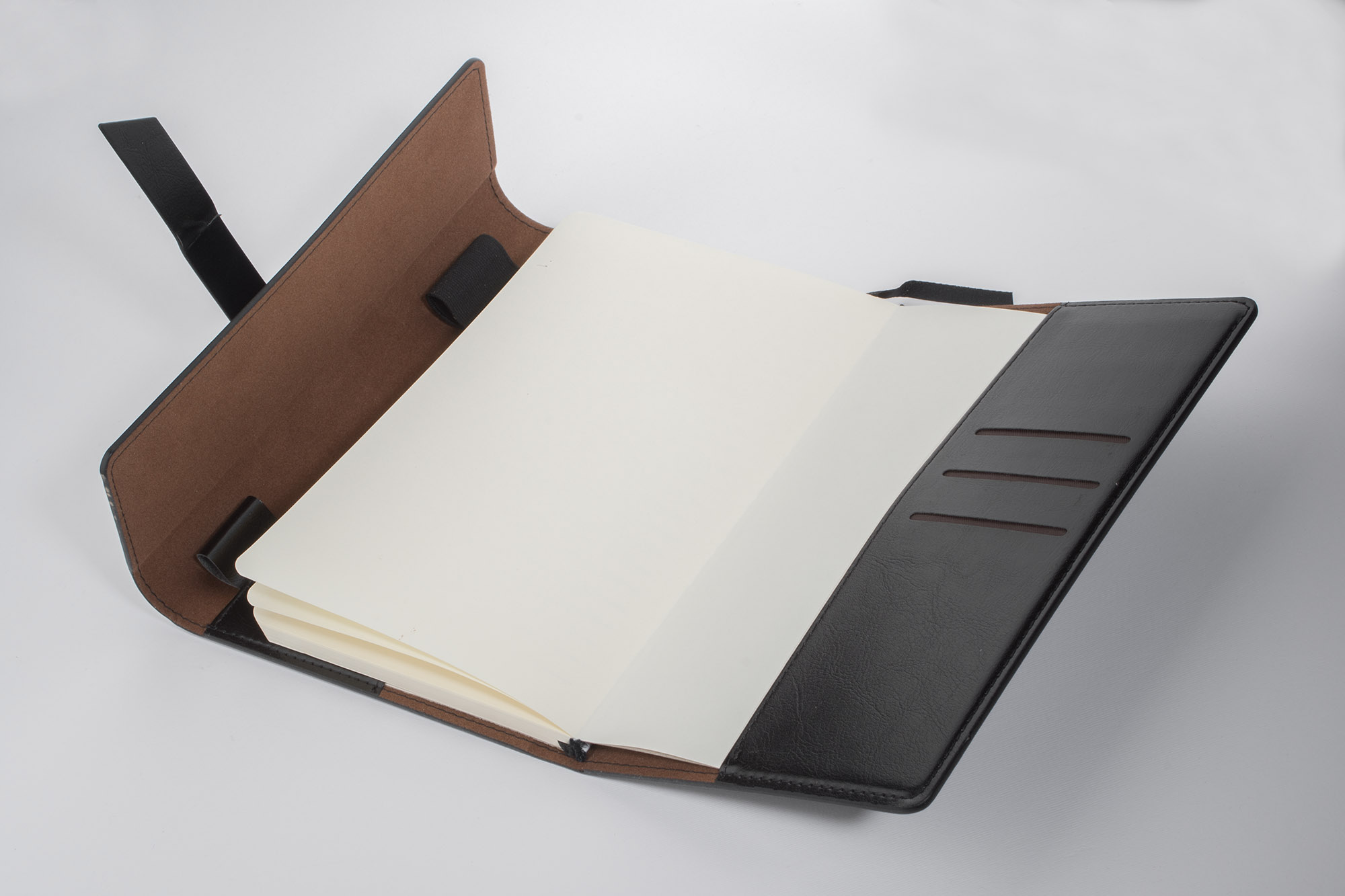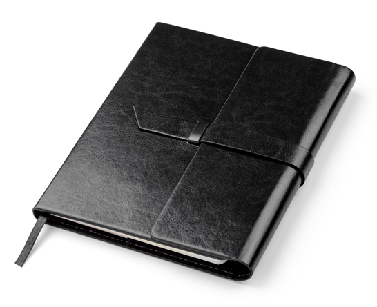 VASCO to elegancki notes formatu A5 w klasycznej okładce wykonanej z materiału skóropodobnego (PU). Notes zawiera 80 kartek w linie oraz praktyczną wstążeczkę - zakładkę. Wewnątrz okładki miejsce na 3 wizytówki, długopis oraz pamięć USB. Okładka nie jest umocowana na stałe do bloku notesu, tylko nasuwana na pierwsze kartki, co daje możliwość wymiany notesu. Notes zamykany za pomocą paska z materiału skóropodobnego (PU).