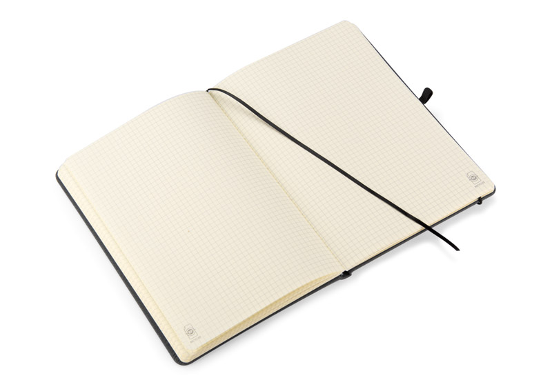 Notes GLITZO posiada 80 recyklingowanych kartek w kratkę, ma kompaktowy format A5 i twardą okładkę wykonaną z recyklingowanego PU. Produkt jest zamykany za pomocą praktycznej gumki, która zapewnia bezpieczeństwo Twoim notatkom, a wstążeczka pełniąca funkcję zakładki, pozwoli Ci z łatwością odnaleźć miejsce, w którym skończyłeś. Dodatkowo, notes posiada miejsce na długopis, co czyni go jeszcze bardziej funkcjonalnym.