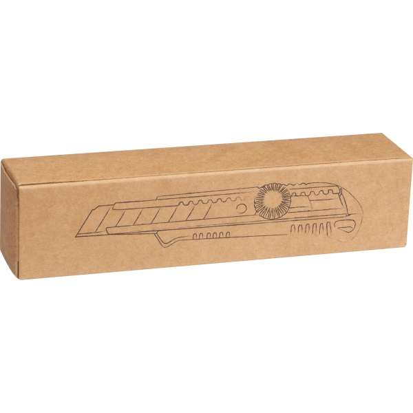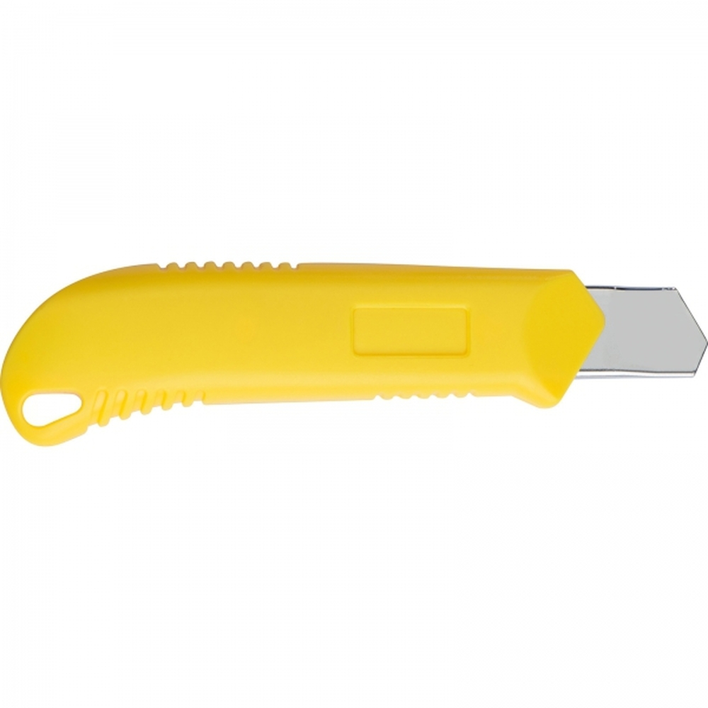 Nożyk w plastikowej obudowie, z odłamywanym ostrzem i blokadą.