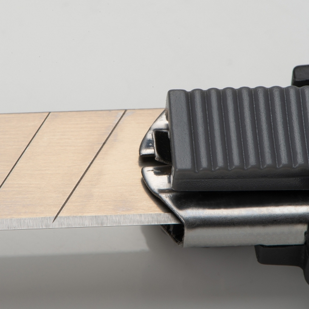 Profesjonalny nóż tapicerski z 4 ostrzami i mechanizmem do ich łamania. Logotyp można umieścić na obudowie.