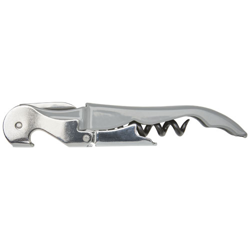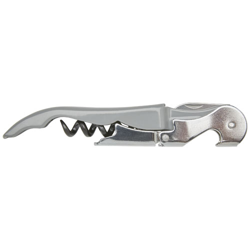 Nóż kelnerski ze stali nierdzewnej z kolorowym korpusem, wyposażony w korkociąg, przecinak do folii i otwieracz do butelek. Dzięki dwustopniowej konstrukcji można łatwo wyjąć korek z butelki.
