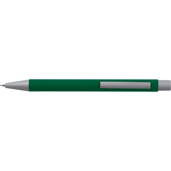 Mechaniczny ołówek wykonany z metalu, z gumową powłoką i rysikiem 0,5mm.