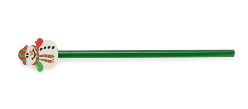 Ołówek CHRISTMAS to świąteczny gadżet, który łączy klasyczny zielony ołówek z gumką w kształcie uśmiechniętego bałwana. Kolorowy, zabawny detal na końcówce sprawia, że to idealny dodatek do paczek mikołajkowych, kalendarzy adwentowych lub jako drobny upominek dla dzieci. Sprawdzi się jako sezonowy nośnik reklamy w kampaniach o lekkim, świątecznym charakterze.