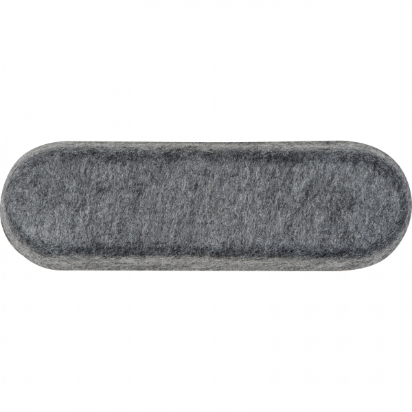 Etui na długopisy wykonane z filcu pochodzącego z recyklingu z bambusową pokrywką, mogącą służyć za podstawkę pod telefon. Pokrywka ma nadrukowaną miarkę. Etui po nałożeniu pokrywki i spięciu gumką może służyć za piórnik.