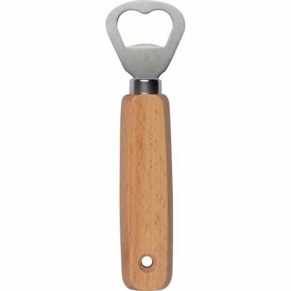 Klasyczny otwieracz do butelek z drewnianym uchwytem.